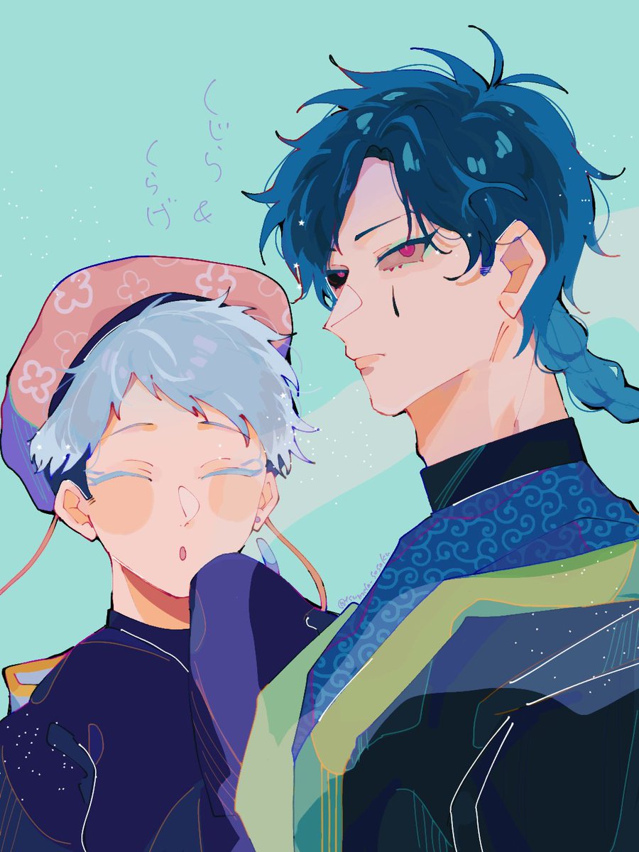 すごく遅くなりましたがぺんぎんさん(@P_E__N)のオリキャラの海月くんと鯨さんを描かせていただきました!その他のキャラもベリベリキュート😄💕💕