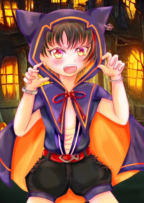 ハロウィン仕様の聡慶🎶 お菓子をもらうために威嚇しているつもりらしい😆 彼もくるるちゃん(@ Sunhina_s )宅のヒナちゃんと衣装合わせしています✨ #あんごらありあ #イラスト #グリマルファッション_ハロウィン