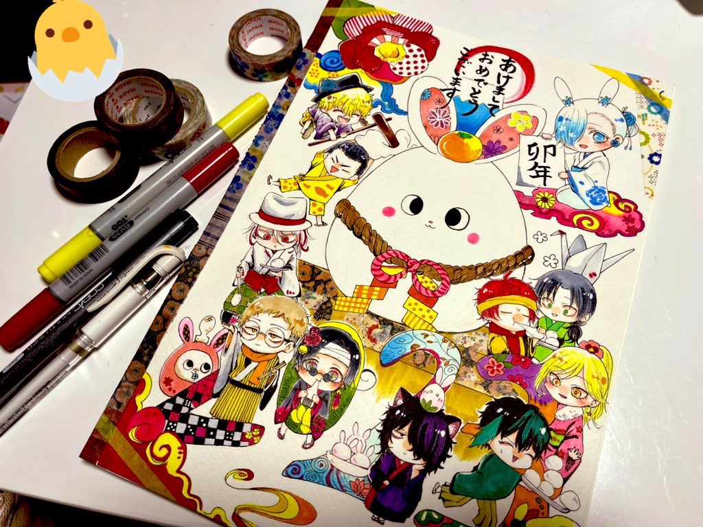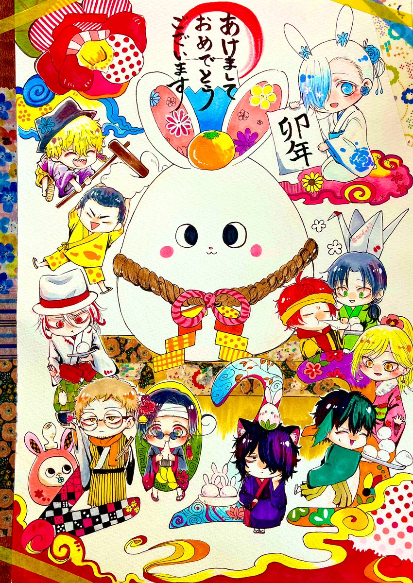 あけましておめでとうございます🌅 2023年も、よろしくお願いいたします! 今年も漫画やイラストをたくさん描きたいです✍️✨✨ #HappyNewYear2023 #年賀状イラスト #アナログ絵 #みんなで楽しむTwitter展覧会 #卯年