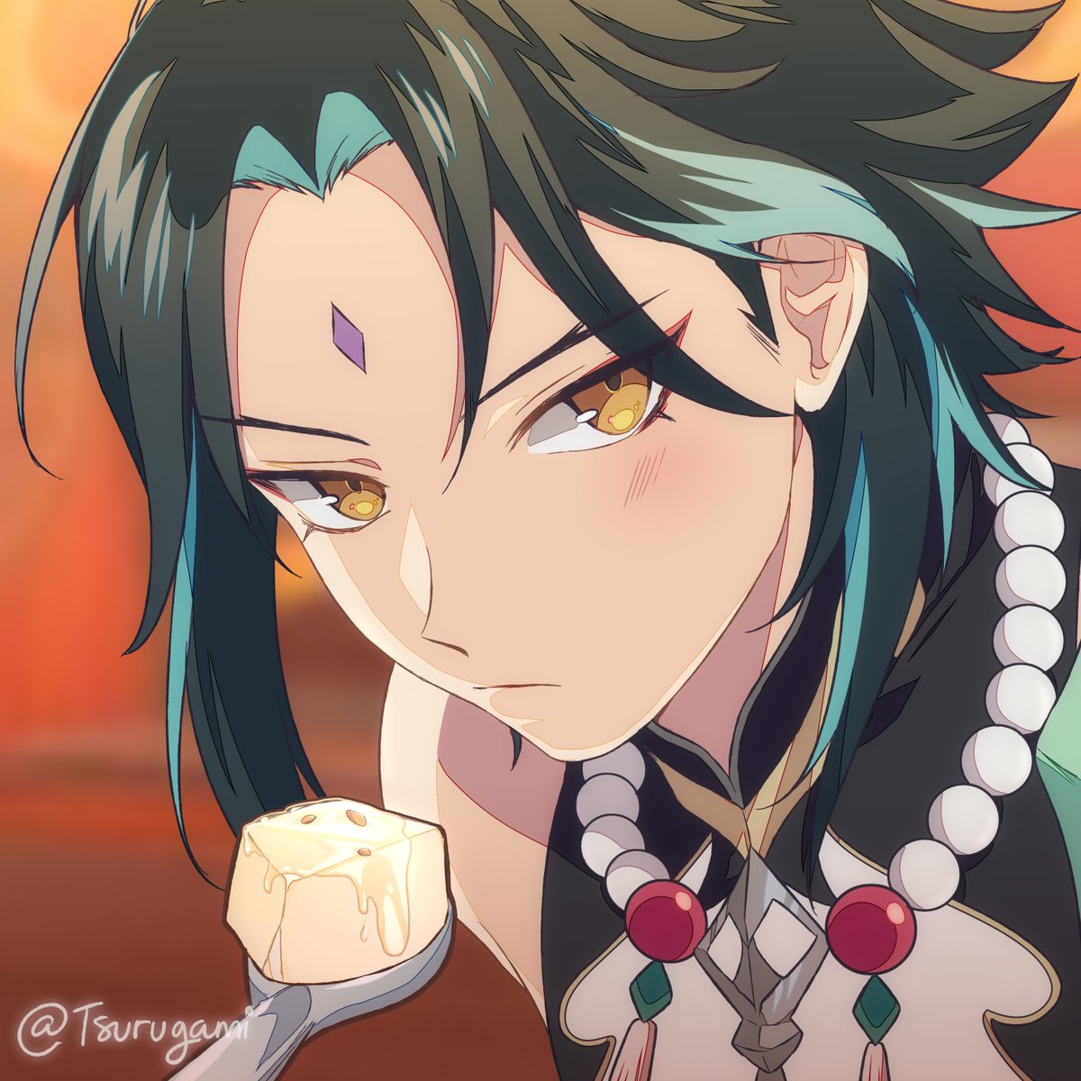 POV you are shoving a spoonful of almond tofu for Xiao 🥺❤ ----- #GenshinImpact #genshinimpactfanart