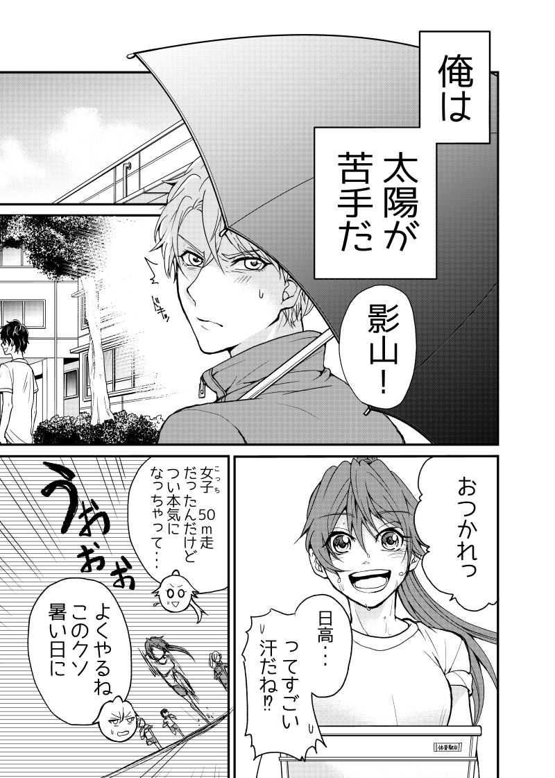 2 4 日傘男子が太陽女子に恋する話。(1/7) #漫画が読めるハッシュタグ #日なたに恋した影山くん 23/08/23 20:07