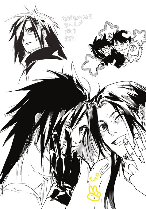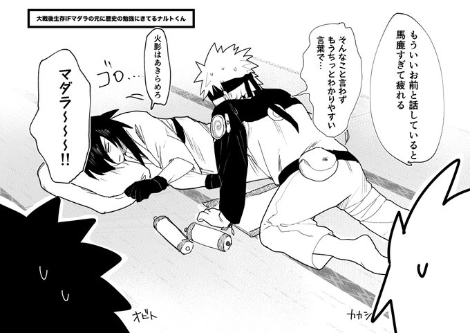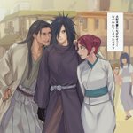 大遅刻だけどイズナ&オビト誕生日おめでとうございました!!🎂✨ 後ろにいるのは最愛の弟と孫(?)の誕生日が一緒で祝い方がバグってしまったマダラ様 謎時空 #うちはイズナ生誕祭2023 #うちはオビト生誕祭2023