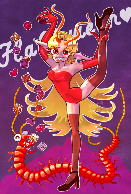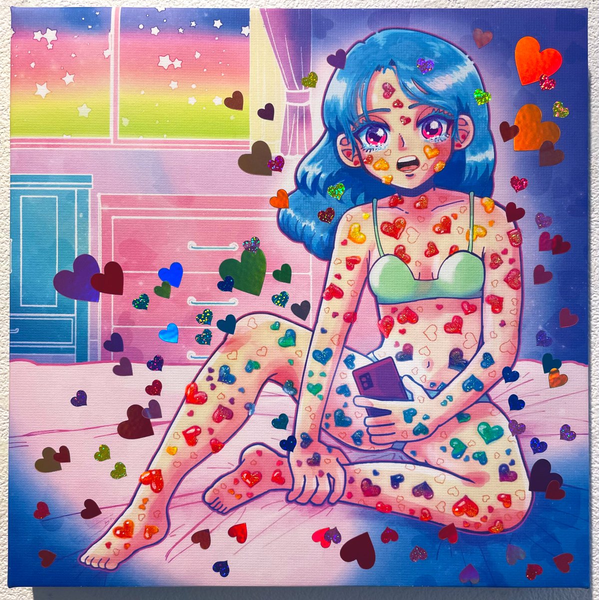 #フォロワー1万人以下の絵師が力作を投稿してたくさんのフォローを貰うタグ 現代妖怪 百々❤️鬼 (どどふぁぼき) デジタルで制作し、キャンバスプリントされたものに彩度を高めるためアクリルガッシュで加筆。 シールやグリッターを使ってキラキラにしています🌈✨ #イラスト #絵 #illustration