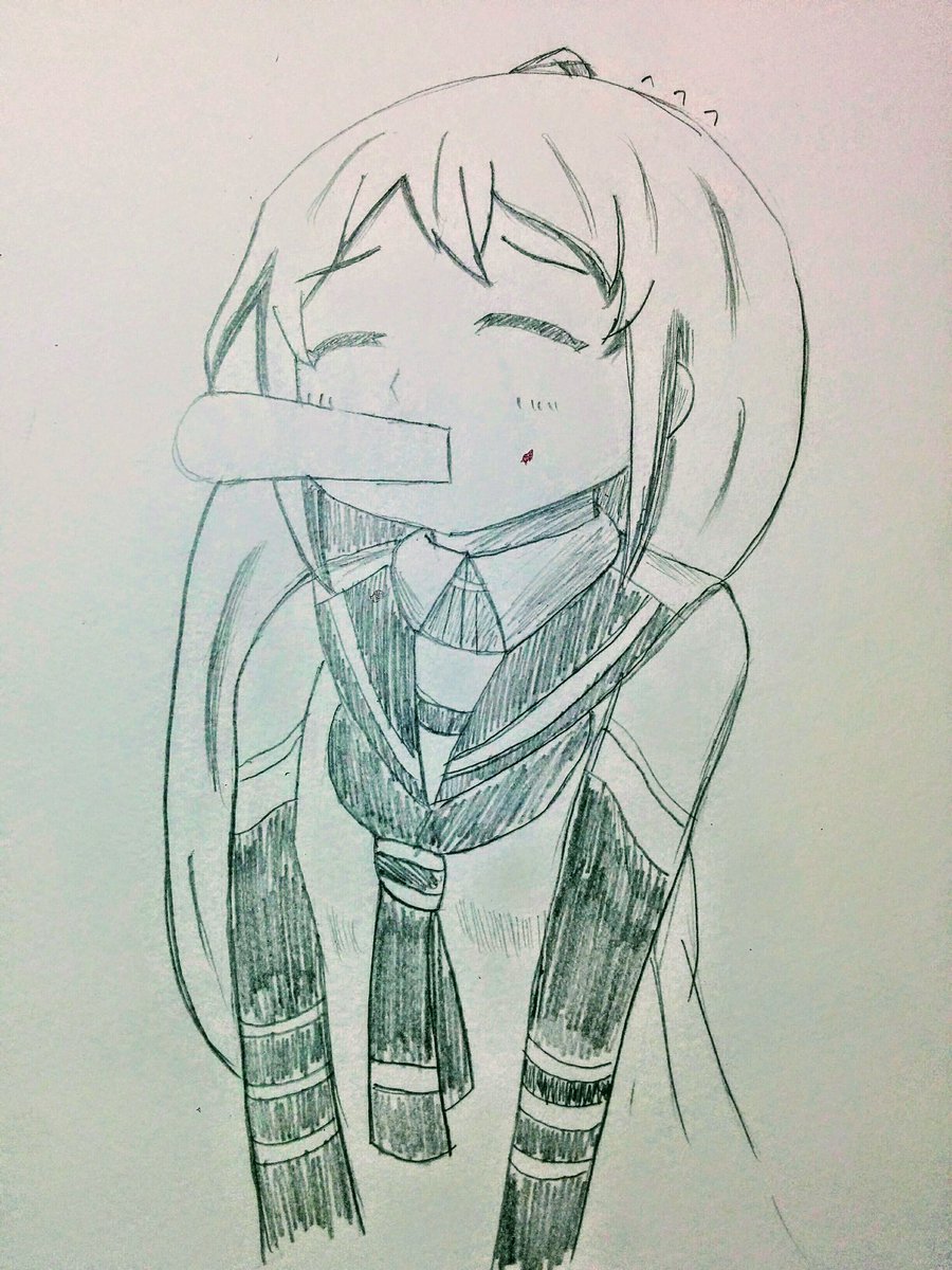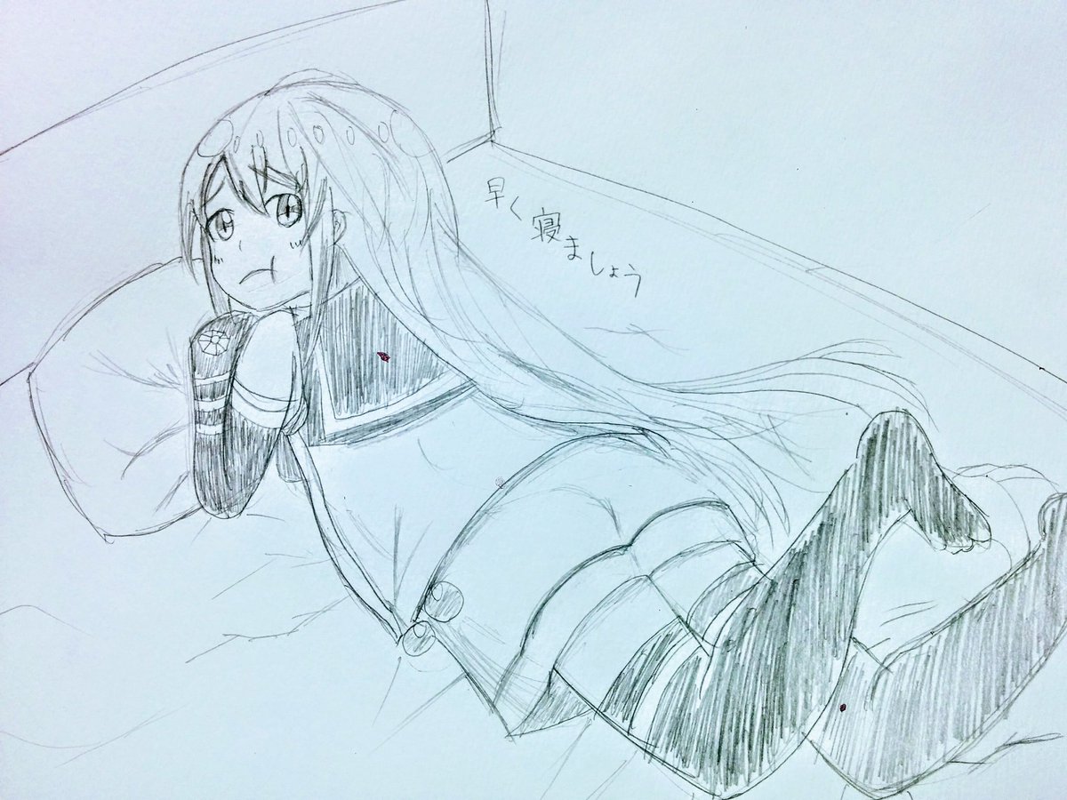 6 3 夜食にポッキー取りに行ったのバレるも「皆には秘密ですよ?」と五月雨ちゃんに甘やかされる絵を描きました 16/11/16 03:39
