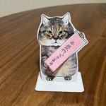 いまわだいの、「ひとりでバイキングたべにいったら、おかわりを取りにいってる間にテーブルを片づけられちゃう」件も、カレンダのふろくを使えばいいよ。 これを持ちあるけばいいよ。 あとTしゃつも出ました。 pal-shop.jp/tsushimacat/ せんでんばっかりでごめんよ。