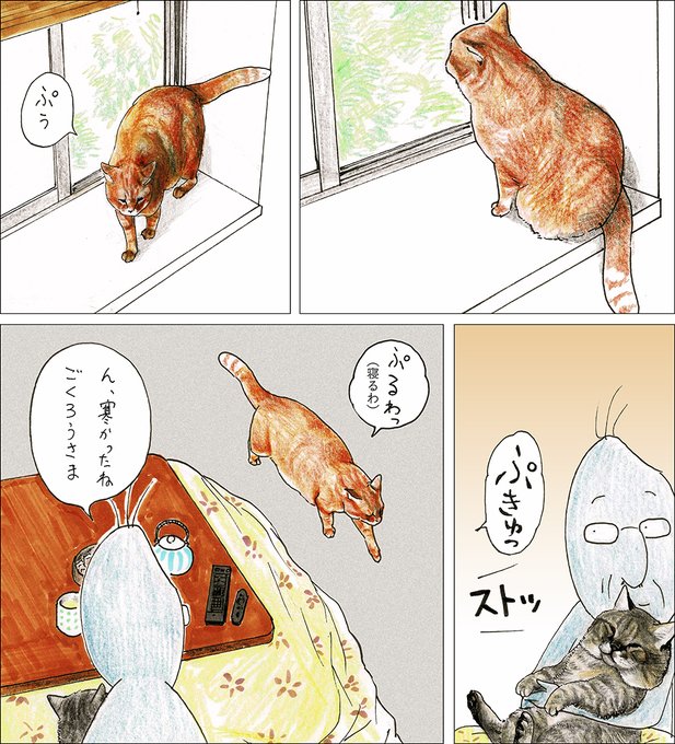 や、どうも。 こないだのつづきだよ。 ちなみに、いえのなかにいくつもある寝ばしょには、それぞれ名まえがついているよ。 ちゃーが入ろうとしてるのは「ちかごう」。ほかにも「けんきゅしつ」「プラネタリウム」「しょさい」なんかがあるよ。 俺のお気に入りは「テキサスタワー」さ。 twitter.com/tsushimacat/st…