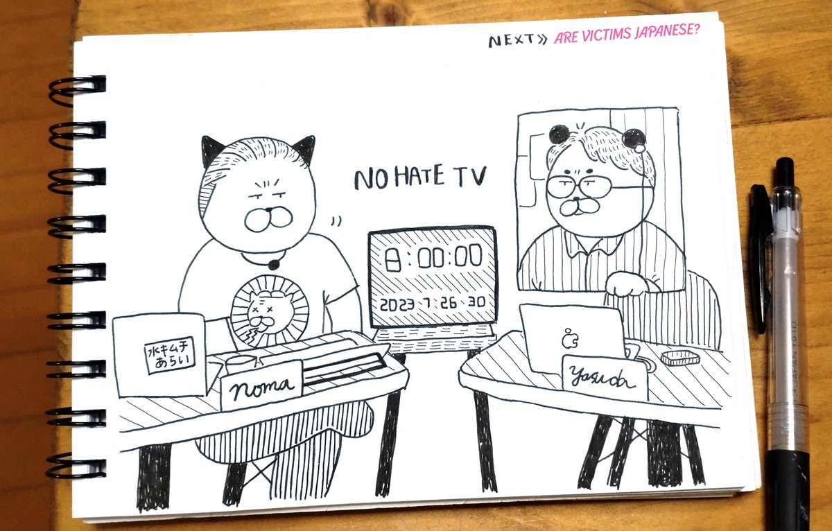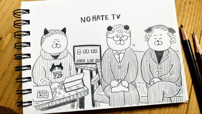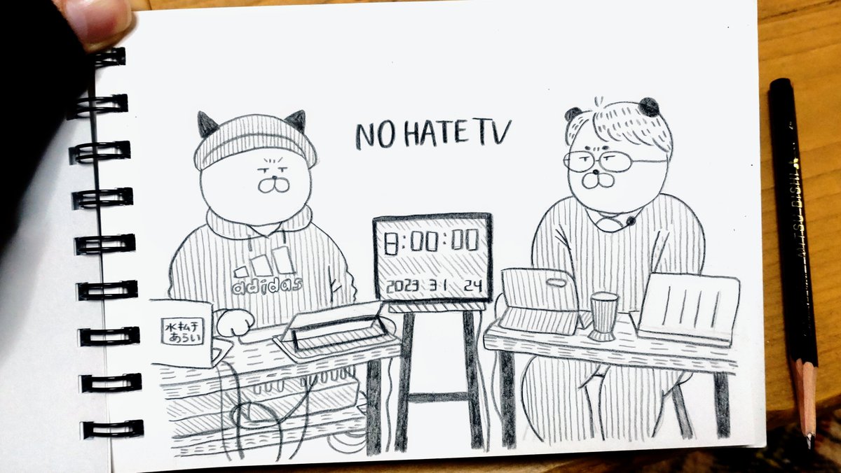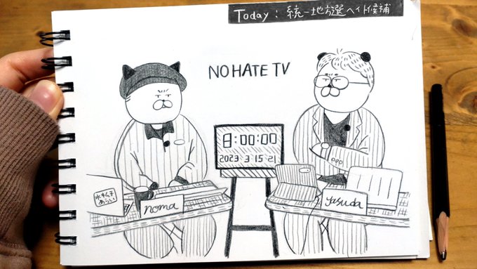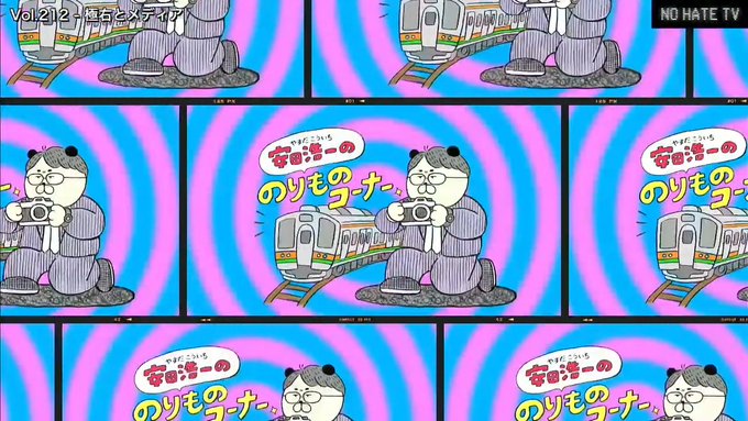 21 108 #NoHateTV「安田浩一ののりものコーナー」のタイトルを描かせていただきました。 初回の素敵な演出に笑いました笑☺️チャットやツイッターのみなさんの反応もうれしかったです。 長く続くコーナーになりますように!🐼 23/03/16 15:11