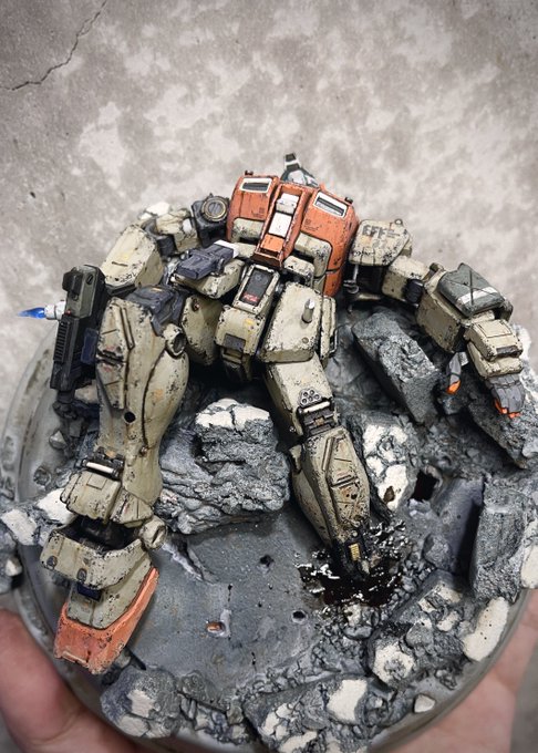 39 523 リアルタッチマーカーでサビ描いた。 ちょっとキツめだけど、ジオラマにした際に埋もれなくて良さそう?🤔 #ガンプラ 22/10/29 20:36