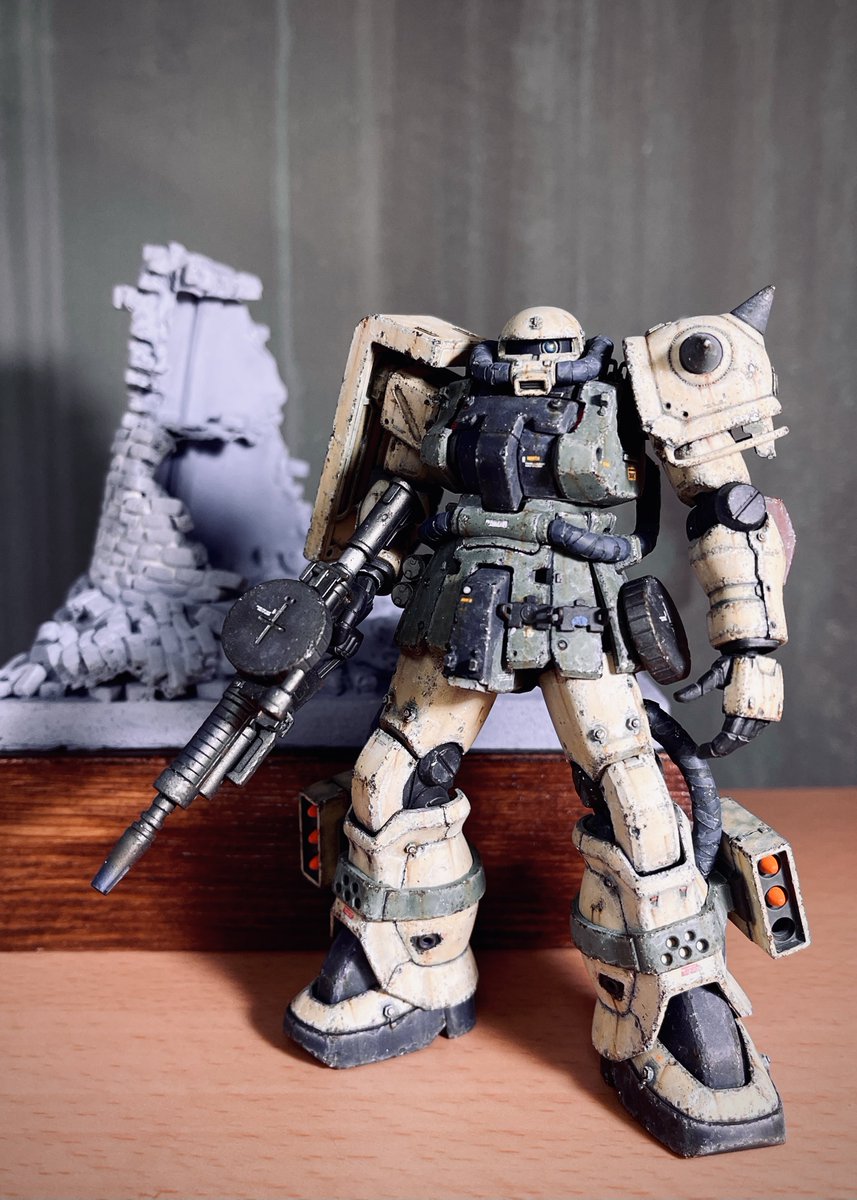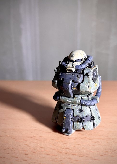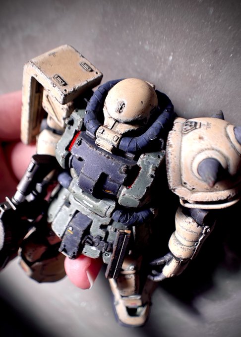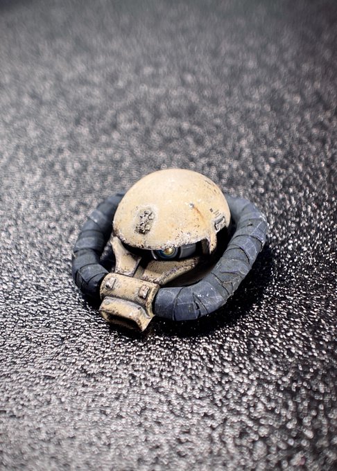 24 432 F2ザクの頭のウェザリングやら。 パイプのマスキングテープは「カッコいいランダム感」を意識して巻いたんだけど結構良き😋 #ガンプラ 22/10/28 07:18