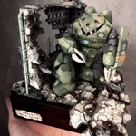 ズゴックのジオラマ完成した🙌 明日晴れたら写真撮ってオークション出してそのお金で肉食ってプラモ買う!!