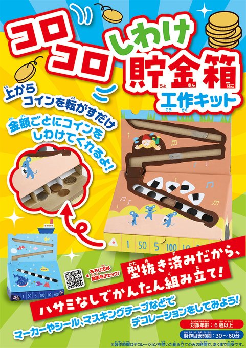 1 6 【お仕事情報】 ブティック社様より6月23日発売予定の「コロコロしわけ貯金箱工作キット」パッケージに掲載される見本作品のイラスト制作させて頂きました。 今回は絵具やシールなどアナログ画材を使って絵を描きました。 お子さんと一緒に絵具やシールなどでぜひ作ってみてください😊 23/05/31 11:18