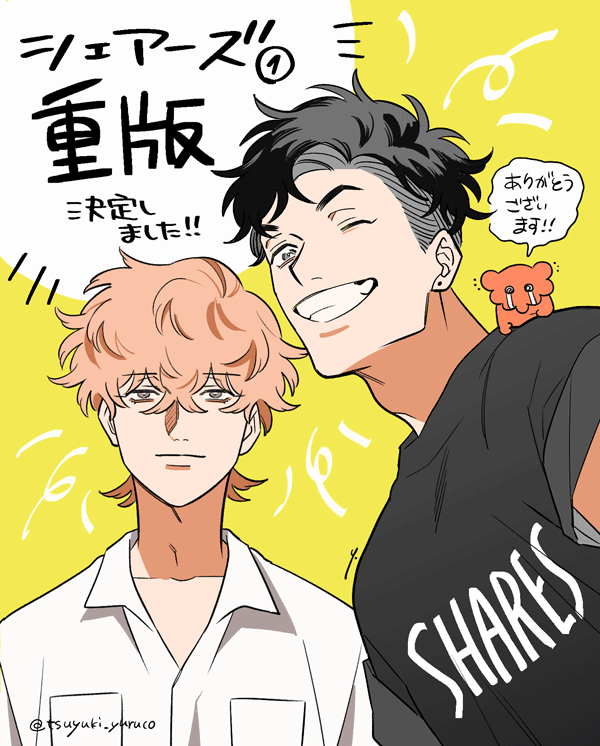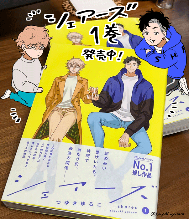 💐「シェアーズ」本日発売💐 特殊能力者のご陽気なユージンと、考え込みがちなヒロが友情を深めていく話です🤝✨つゆきの固定ツイート、webアクションにて1話無料公開中🌼どうぞよろしくお願いします~! 📚Amazon📚 amazon.co.jp/dp/4575440183/…