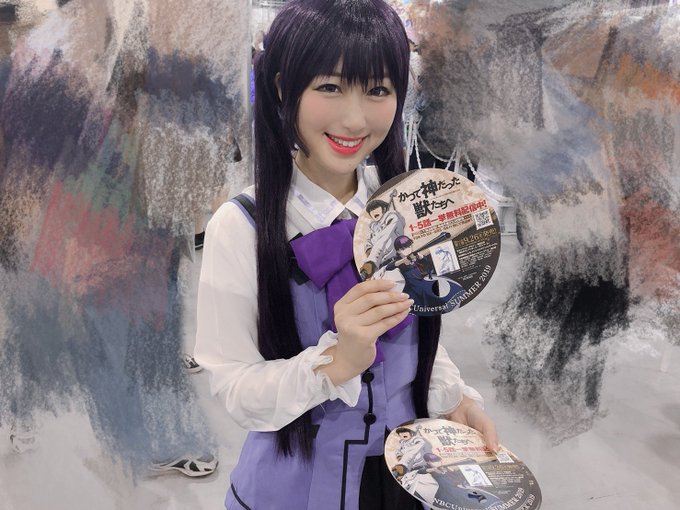 うちわの配布してます~! 数に限りがあるので無くなる前に来てくださいね🐰 今日はごちうさのリゼちゃんのコスプレです…! #エアコミケ #エアコミケコスプレ #ごちうさ #ご注文はうさぎですか
