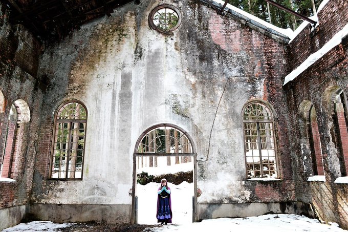 土曜日のロケから。山の廃墟にも行きました。#廃墟 #アナ雪 #コスプレ
