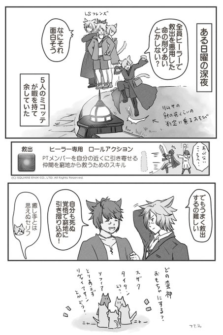 全員ヒーラーで行く救出バトルロワイヤルが楽しかったのでレポ漫画を描いてみました🐈 #FF14
