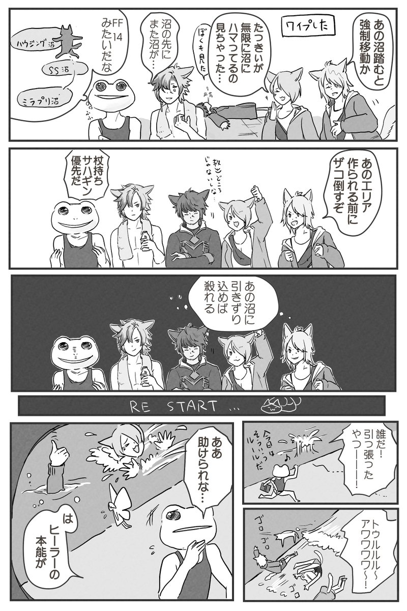 28 57 全員ヒーラーで行く救出バトルロワイヤルが楽しかったのでレポ漫画を描いてみました🐈 #FF14 21/01/31 22:56