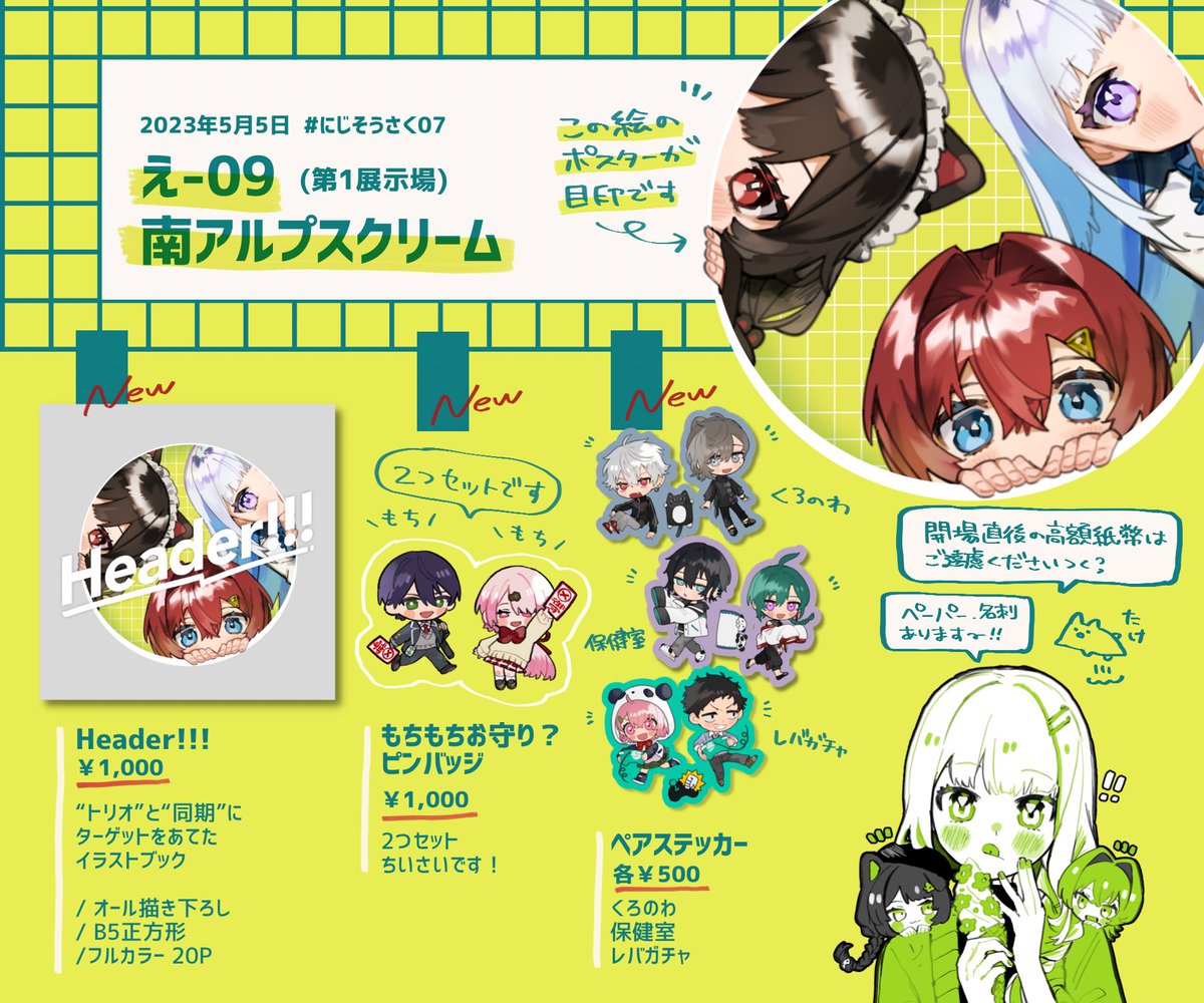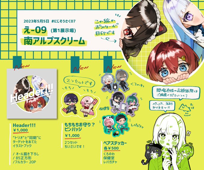 5/5 にじそ07のお品書きです!! 【え-09】にてお待ちしております。 緊張!直前ですみません! よろしくお願いします〜!!⸜🌷︎⸝ #にじそうさく07