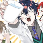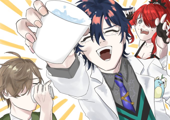 #絵バンス #レインの依頼書 #まめねことレオス 綺麗過ぎる流れで水を奪われるパタの横でスッと水を飲み始める教授、最高でした