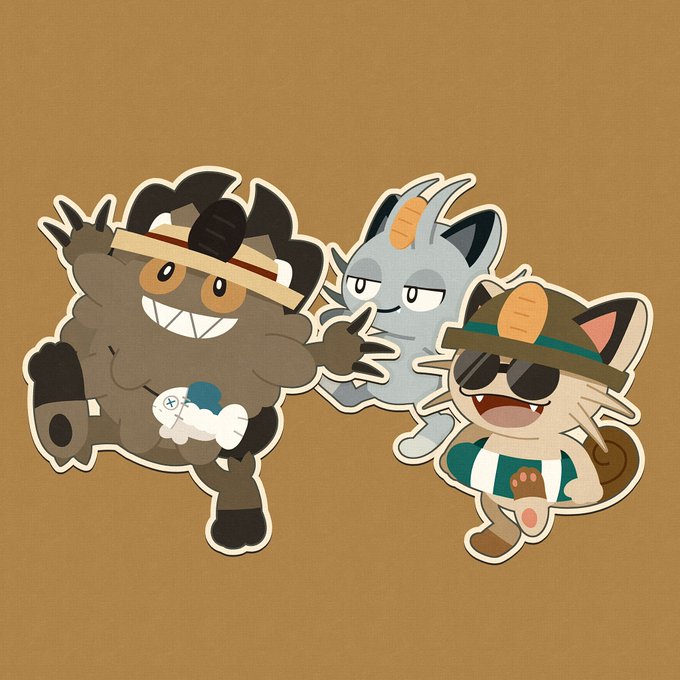 久々リハビリお絵描き🌼✨ 夏を楽しむニャース達と アブリーとアーケン デス🌻