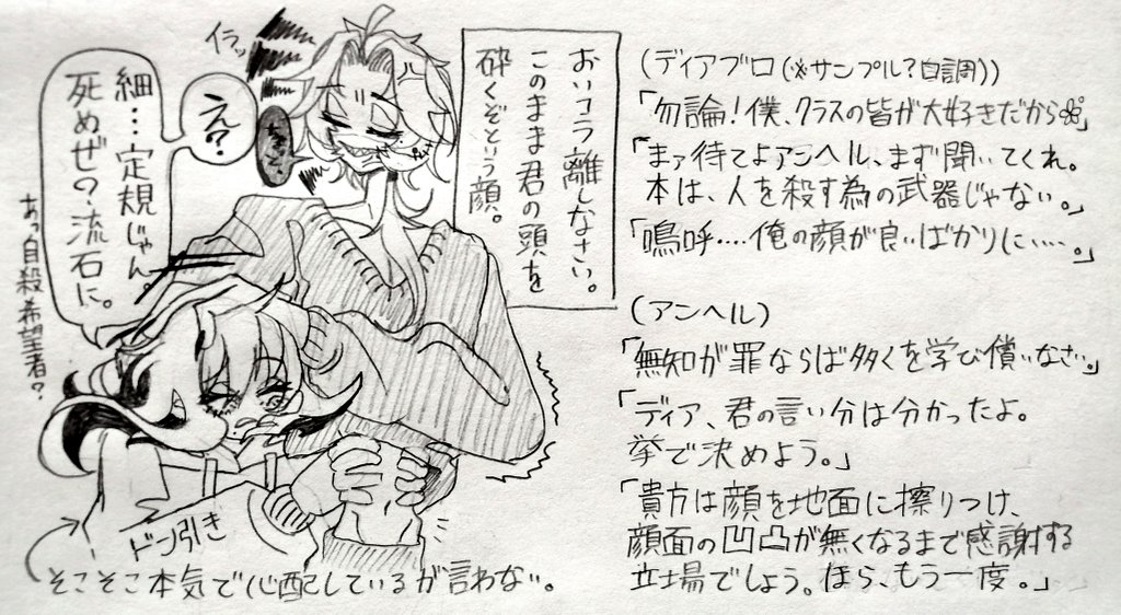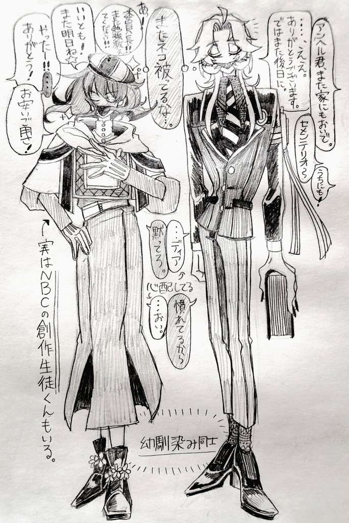 相互さんにアンヘル君描いて頂けて嬉しかったので上げるつもりの無かった創作生徒達の📝落書き上げちゃお😊💕