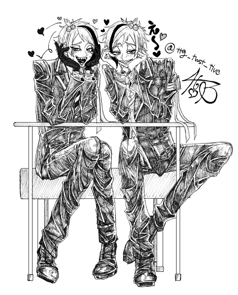 #twstファンアート 女児の髪ゴムを着けている🌊兄弟