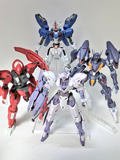 1 2 主役と三派閥モビルスーツが完成したのでパチリ。ほぼ同じ方法で塗ったので並べても違和感はないはず。どれもメーカーが違って特徴あっていいな。ダリルバルデが圧倒的に作りやすかった。 #ガンプラの画像を貼るとRTされると聞いて 23/05/06 23:14