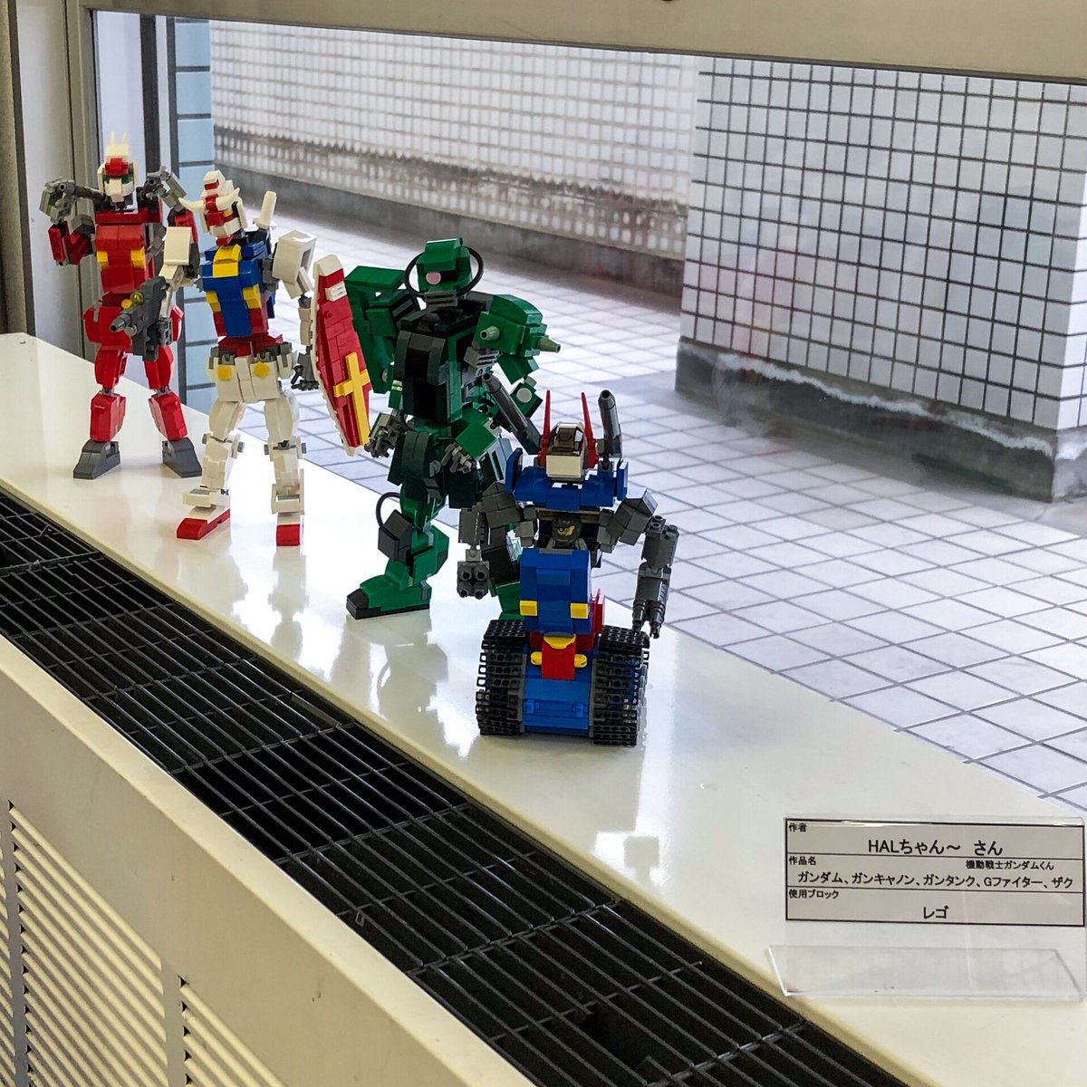 12/2 #ブロックエキスポ にて、今は飛行機の中かなぁ。 #HALちゃん さんのガンダムたち。ガンタンクを見てわかる通り、ミニフィグが乗るように設計されてる!