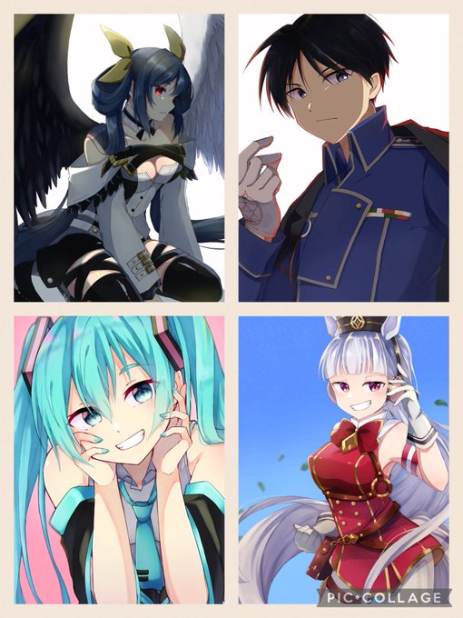#イラストを4枚貼ると秋風に乗って絵柄を好いてくれる人の元へ届くらしい かわいい女の子と黒髪男子キャラが好きです