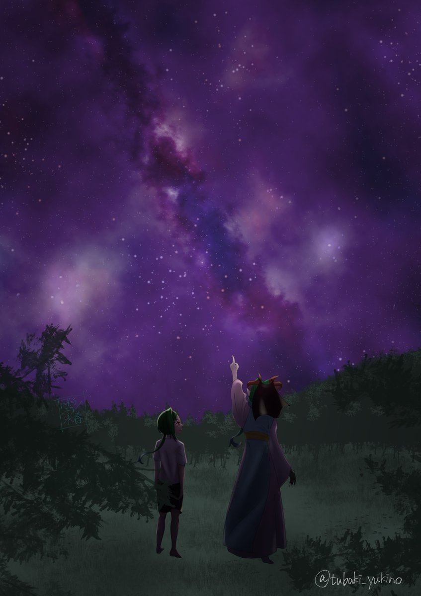 3 18 ゐ先生の創作の世界感が好きだーーーー!という思いで描きました。 湖のほとりで星を眺める女の子と…… #イラスト 22/03/29 16:01