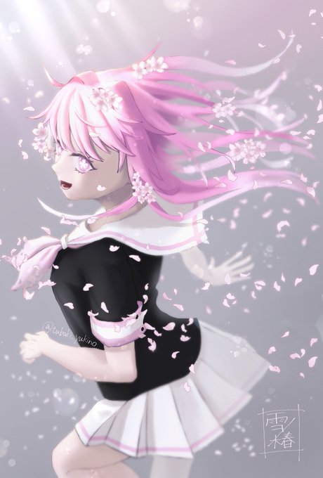 桜の時期なのでうちの桜っ子を描きました🌸🌸🌸 もうすぐ散りそうなので間に合って良かった〜〜〜! #イラスト #一次創作