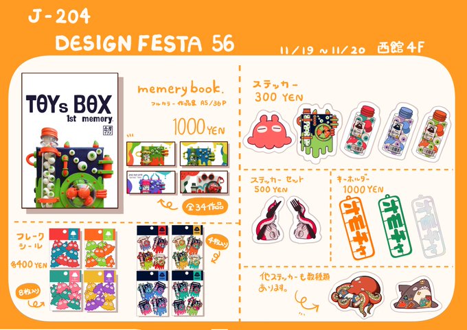 📢お知らせ📢 11月にある #デザインフェスタ56 に出展します! まだまだ新作を用意してますので、 ぜひ遊びに来てください!! 🎪日 時:11/19~11/20 🎪ブース:西館4F【J-204】 #デザフェスお品書き #デザフェス56