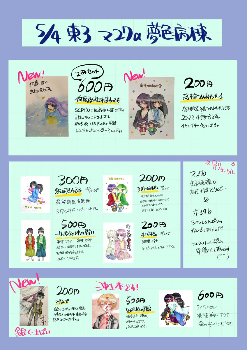3 4 かぶき超大集会2023 おしながき | つぶらもち #pixiv pixiv.net/artworks/10768… にもあけ上げたけどお品書きです! 23/04/30 23:11