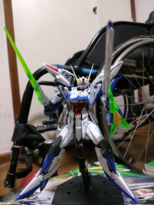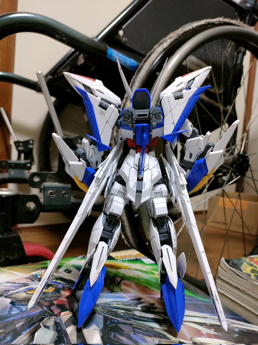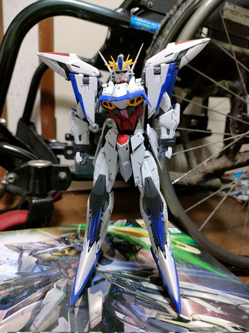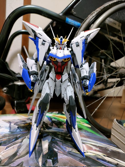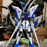 エクリプスガンダム完成!最近イマイチやる気が出なくて2ヶ月ぐらい放っておいた。エクちゃんゴメンね。素組み、墨入れのみ。変形させるとあちこち部品が取れるのでMS形態のまま。 #ガンプラの画像を貼るとRTされると聞いて