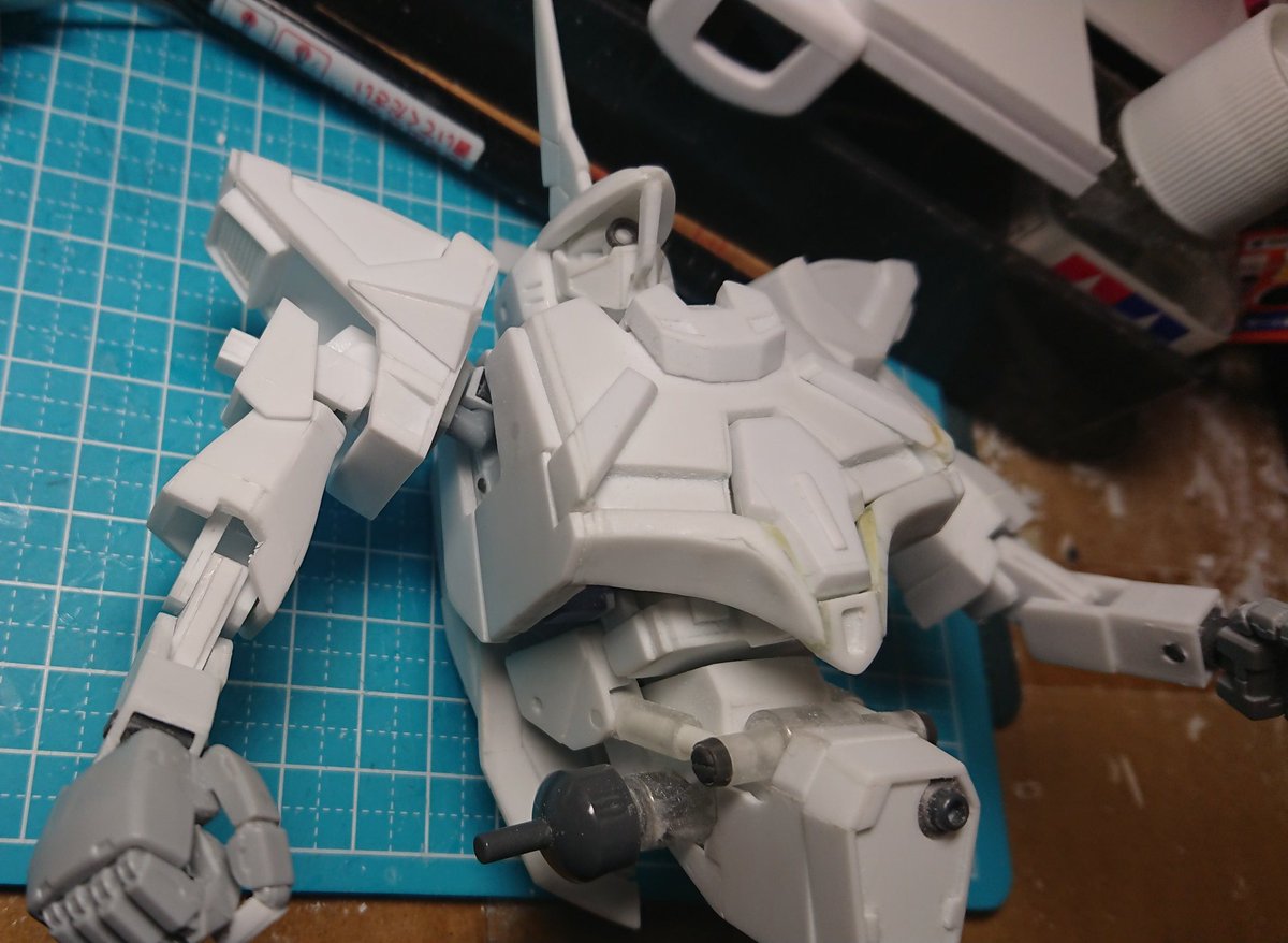 #ガンプラ #スクラッチ #ギラズール 上半身は一応出来上がりです。 腕もこれくらい可動域があれば武器も一通り装備できそうです。