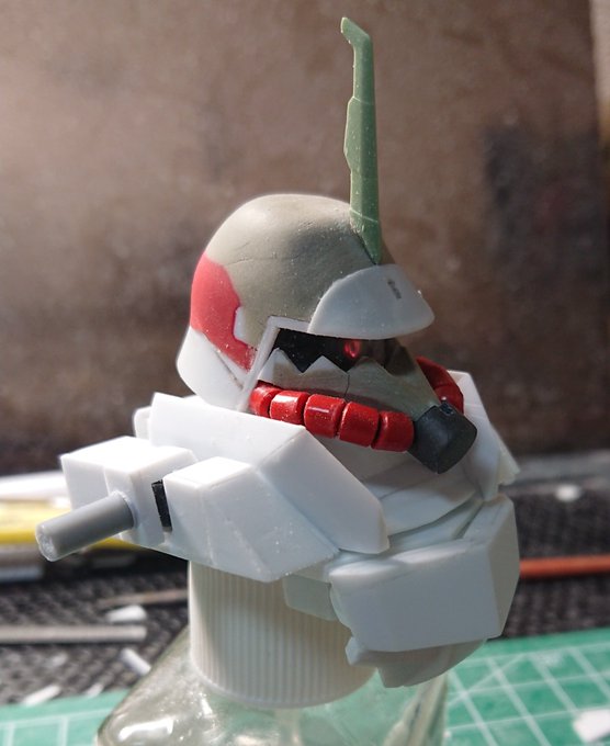 3 22 #ガンプラ #スクラッチ 配色ごとにパーツ分けしているので数が多めです。頭の中身はザクのまんまです。 21/10/24 07:33