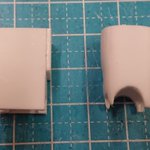 #ガンプラ #スクラッチ #ギラズール 上腕は丸みのある形状なので、パテでも良かったのですが、硬化時間を待ちたくなかったので、プラ板の箱組したものから削り出しています。