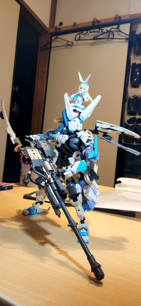 アリス専用ブイトール! こうして見るとウサギさんイケメン! でっかいブイトール刀とでっかいリボルビングバスターキャノンを合体させた最大武装がうなるぜ! #ブイトール #メガミデバイス #ヘキサギア