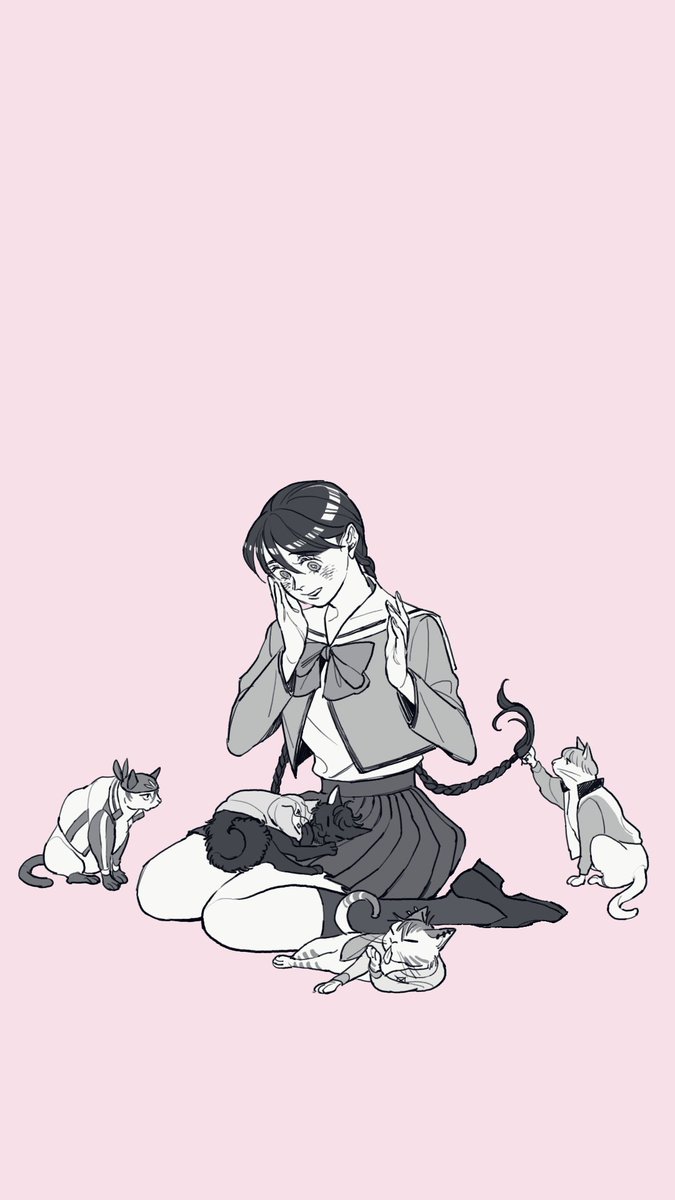 70 402 🐈⬛猫の日🐈⬛ 前垢でリクエストいただいた 「にゃんこな次期部長組と竜崎桜乃ちゃん」 再掲します🐾 22/02/22 23:03