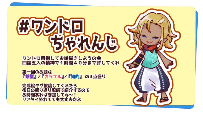 【#ワンドロちゃれんじ】 ◆8月29日 夜9時~ ⇒ youtube.com/live/Ien8SIU9C… ◇キャラクター:銀髪 ◆作風:カラフル ◆ポーズ:知的 そんな感じのお題で一緒にお絵描きしよ! うちの子/Vtuber/二次創作何でもいいよ 気分的にお題に沿ってたら参加してるって感じで。