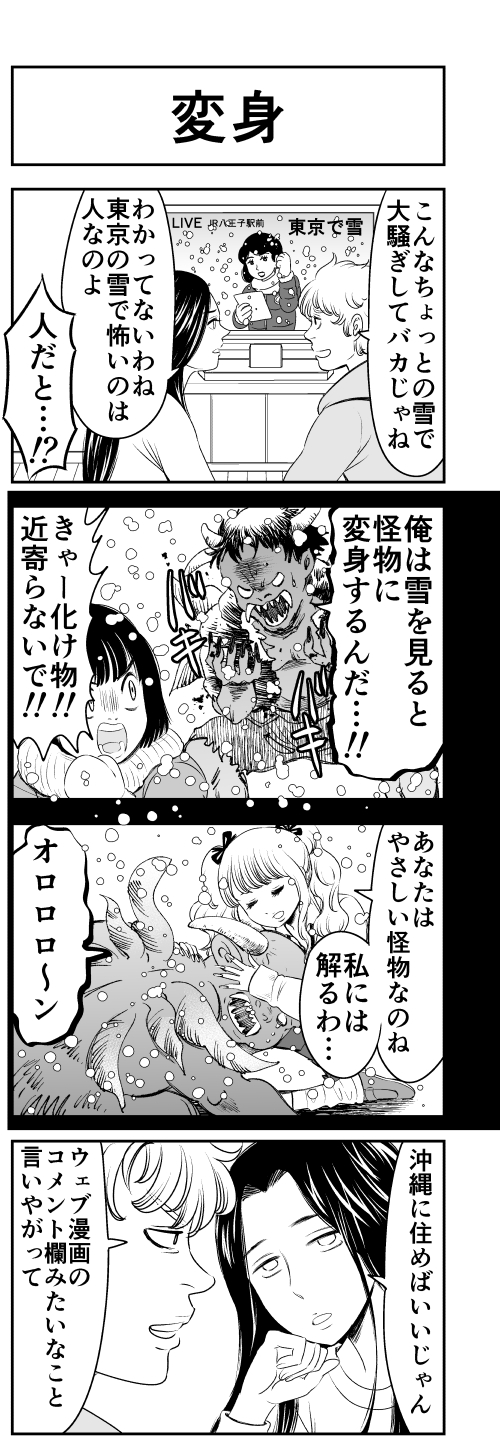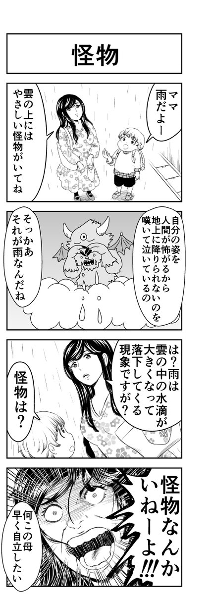4コマ人間は起承転結の夢しか見ない 怪物 tuezou-4coma.at.webry.info/202210/article… #4コマ漫画 #四コマ漫画 #4コマ人間は起承転結の夢しか見ない #漫画が読めるハッシュタグ #創作漫画