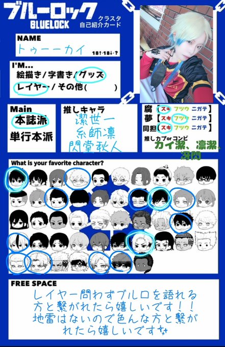 コスのキャラ増えたので🙌🙌 レイヤー問わずブルロ好きな方と繋がれたら嬉しいです☺️✨ RT、いいねとも無言フォローにてお迎えします! #ブルーロック好きさんと繋がりたい #ブルーロッククラスタカード #ブルロレイヤーさんと繋がりたい