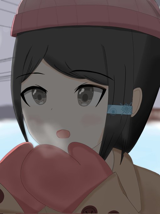 2 6 #イラスト 雪景色の中寒くて息が白くなるうちの子を描きました なんで手袋してるのに息当ててんだろ、、、 22/02/04 20:23