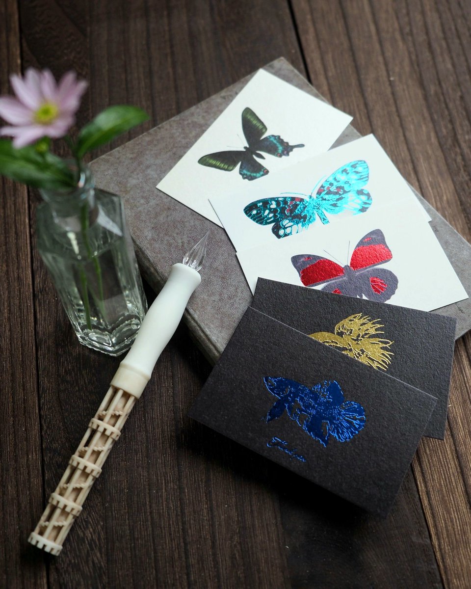 #今年も残りわずかなのでお気に入りの4枚を貼る 今年は半立体にポストカード、ポスター、オーナメント風アクセサリー、ポップアップカード、レターセットなど多くの新作を制作することができました! 技法の習得面でも、金属箔加工にかなり成長が実感できております。来年も色々挑戦して参ります💪✨ twitter.com/tukana_seisaku…