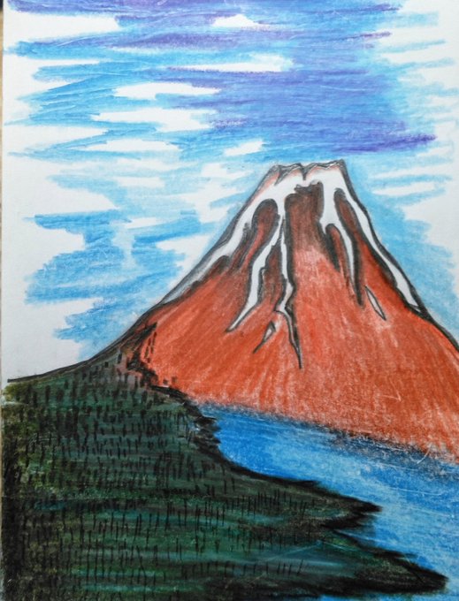 2 7 今日の息抜きお絵かき① 「冨獄三十六景の模写」 #アナログイラスト #線画 #色鉛筆 #絵描きさんと繋がりたい 21/05/14 18:16