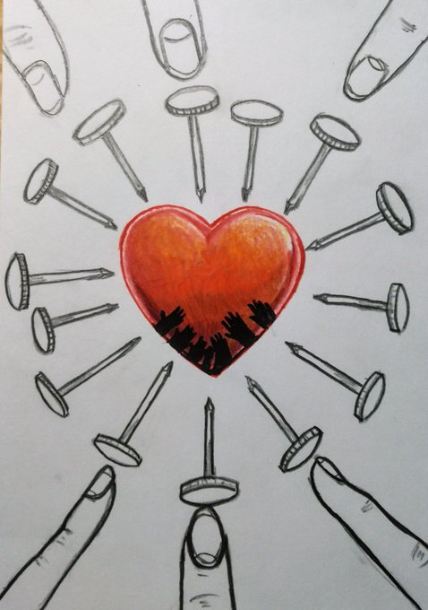 4 5 息抜きお絵かき③ 「Don't touch」 #アナログイラスト #線画 #色鉛筆 #絵描きさんと繋がりたい 21/05/14 20:05