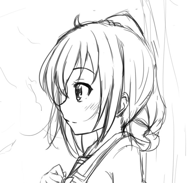 はじめてめぐるんるんの横顔を描きましたが、横ポニ?を前と後ろどっちに流すか悩みましたがやや後ろ気味に流すことにしましためぐるちゃんは可愛い!!🥰