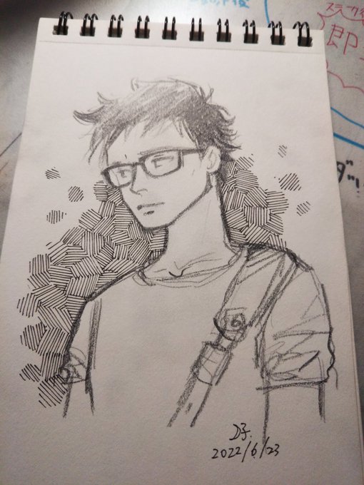 6 66 今日の落書き。 久しぶりに男の子描いてみたけどやっぱり男性を描くときは資料見たくなるなあ。ファッションとか骨格とか。資料見るのは自分的にもう落書きじゃないからなあ。資料見るのは本気絵。 22/06/23 09:55