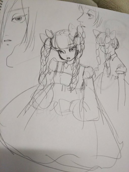 今日の落書き。Twitterに流れてきたなんかの映画の予告に出てきた女の子の髪型。この三つ編みをワシッて怖いおばさんに握られて振り回されてた。あのプロレスの足首持って振り回す奴みたいに‼️