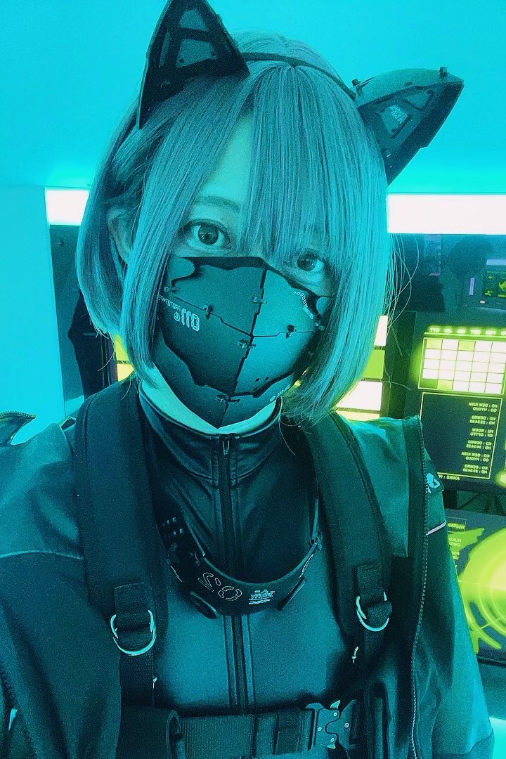 サイバーパンクっぽい衣装で自撮りしてきた、40代中年男性です。🐈⬛