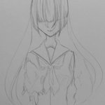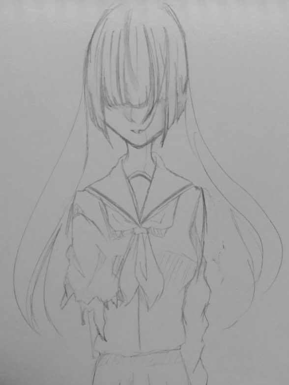 1 10 笑ってる(かもしれない) #イラスト #アナログ #セーラー服 #ロング #病み絵(かもしれない) 21/08/16 22:29